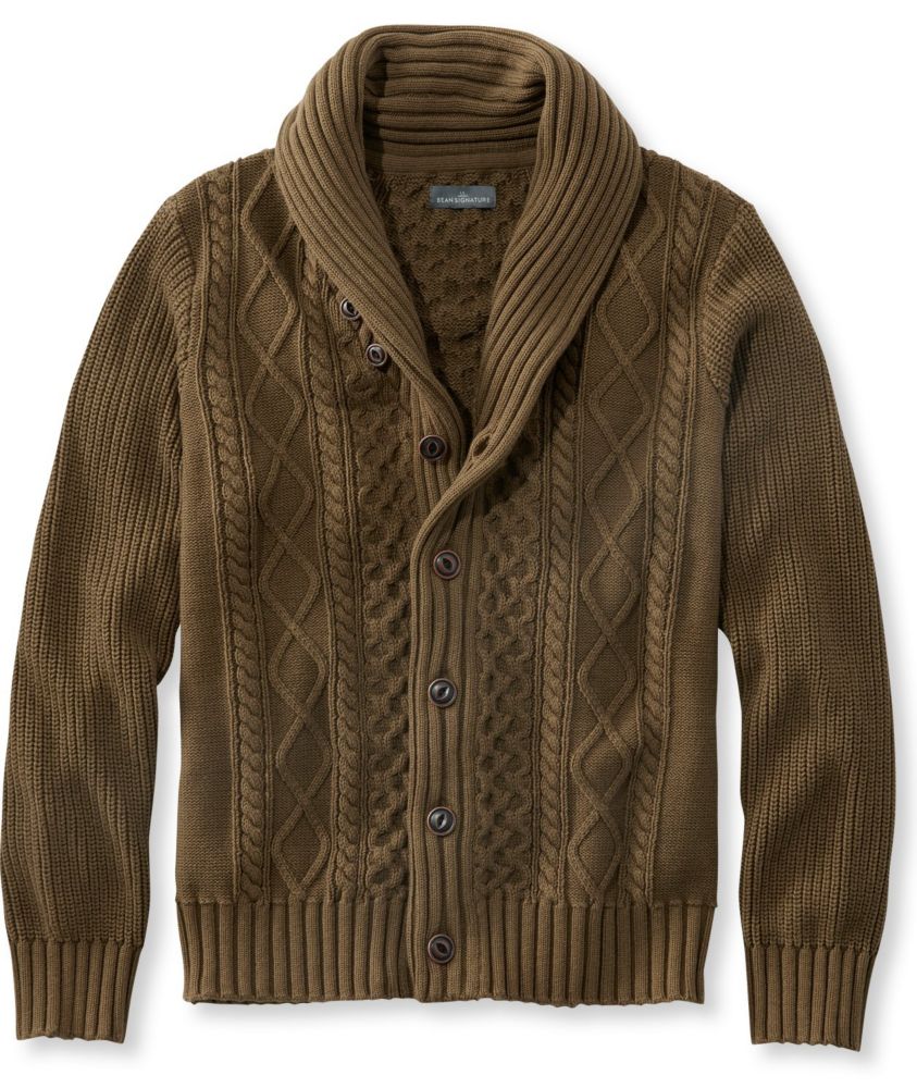 Men's Signature Fisherman Sweater, Washed ShawlCollar Cardigan